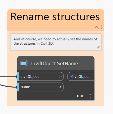 When adding Pipes and Structures to a Pipe Network, Civil 3D uses a template to automatically assign names. This is usually sufficient during initial placement, but inevitably the names will have to change in the future as the design evolves. In addition, there are many different naming patterns that might be required, for example naming Structures sequentially within a pipe run starting from the furthest downstream Structure, or following a naming pattern that aligns with a local agency's data schema. This example will demonstrate how Dynamo can be used to define any type of naming strategy apply it consistently.