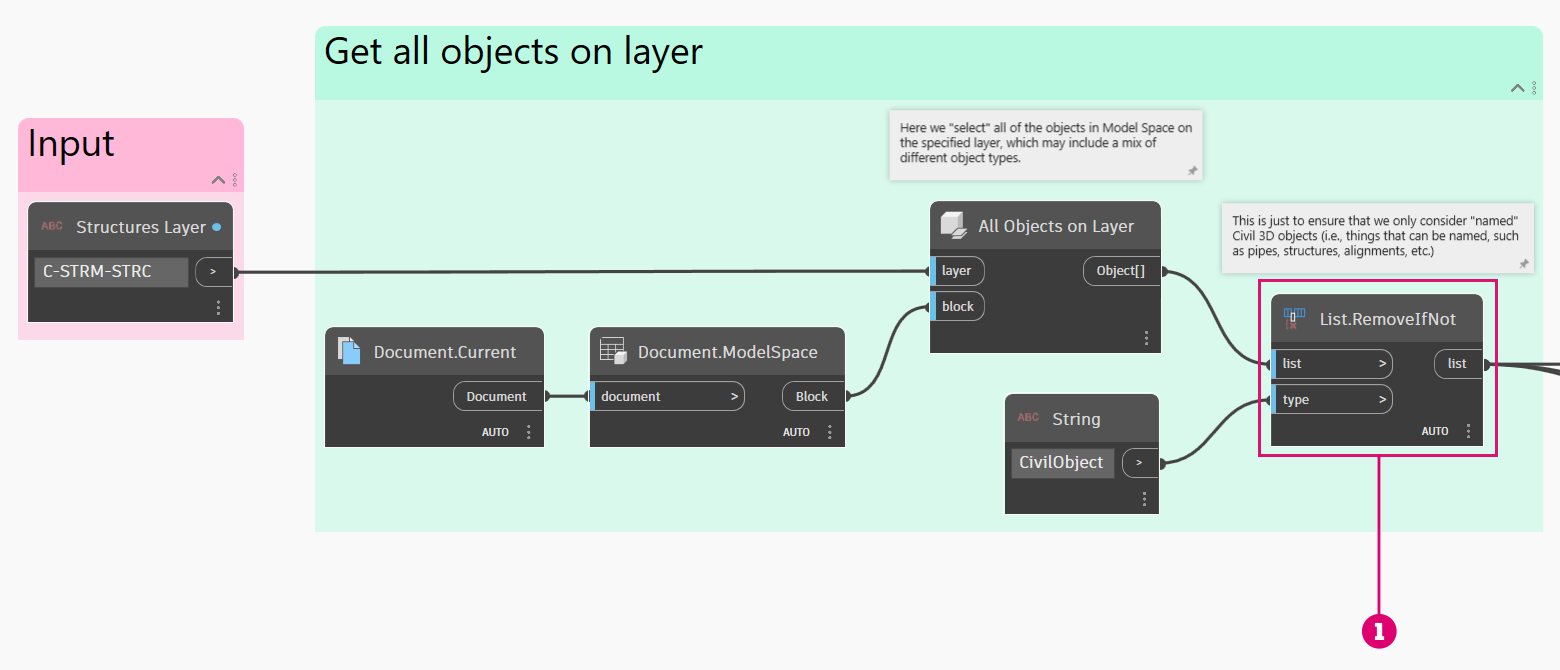 > 1. This node ensures that we don't accidentally retrieve any undesirable object types that might share the same layer as the Structures.