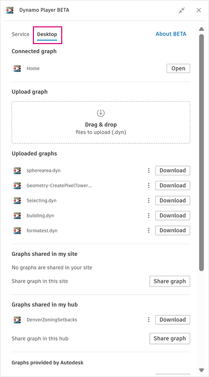 4. En la parte superior, haga clic en Desktop para acceder a la versión de escritorio de Dynamo.