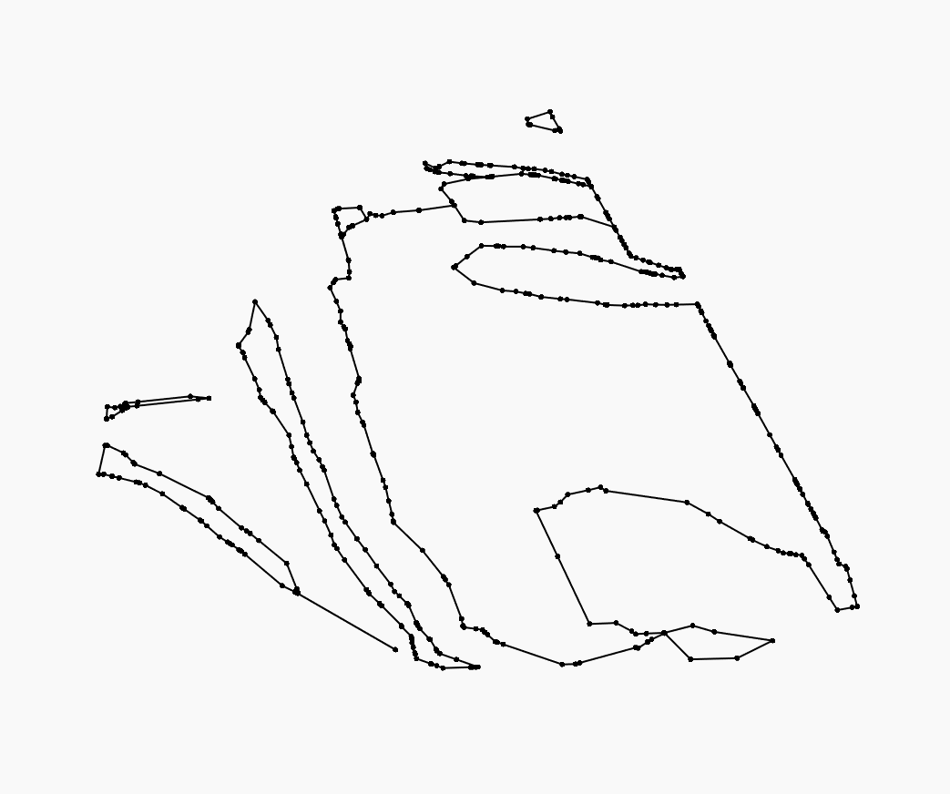 À ce stade, le script Python doit produire une liste de points Dynamo que vous pouvez voir dans l’aperçu en arrière-plan. La dernière étape consiste simplement à créer des polycourbes à partir des points. Notez que cette opération pourrait également être réalisée directement dans le script Python, mais vous l’avez intentionnellement placée en dehors du script dans un nœud afin qu’elle soit plus visible. Voici à quoi ressemble le graphique final.