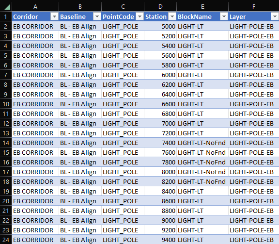 Vous approchez du but ! Vous disposez de toutes les informations nécessaires pour placer les références de bloc. La première chose à faire est d’obtenir les définitions des blocs que vous souhaitez à l’aide de la colonne *BlockName* dans le fichier Excel.