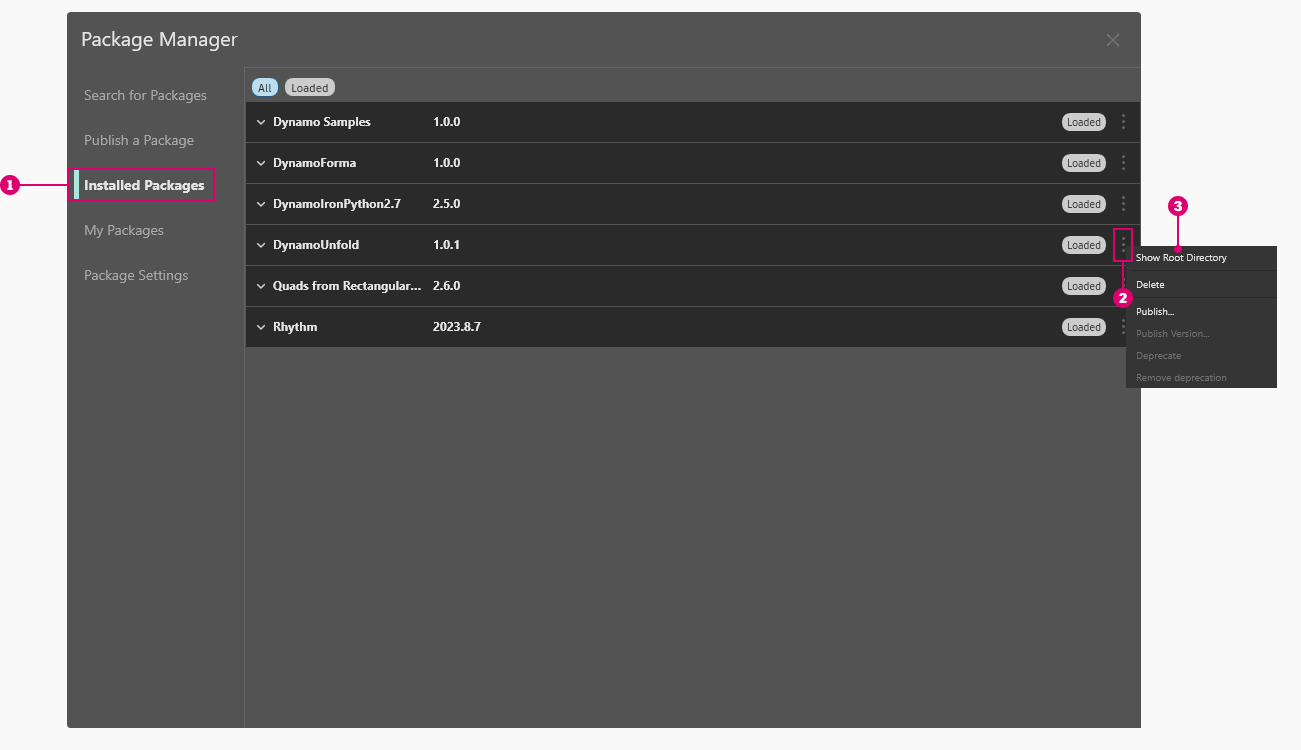 ### パッケージ フォルダをインストールする - DynamoUnfold