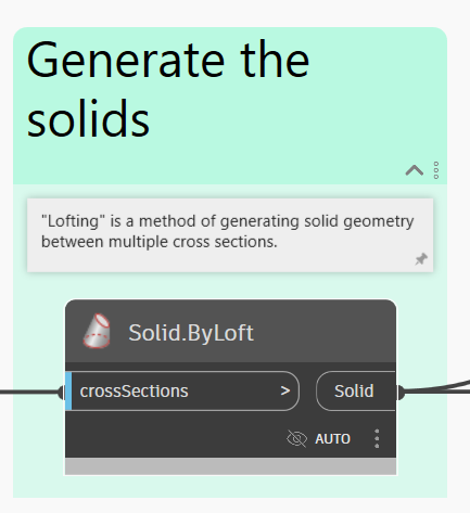 Temos boas notícias. O trabalho árduo está feito. Tudo o que precisamos fazer agora é gerar sólidos entre os perfis. Isso é facilmente obtido com o nó **Solid.ByLoft**.