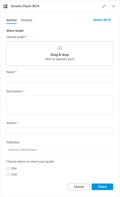 При использовании классического приложения Dynamo проигрыватель распознает граф, который в данный момент открыт в Dynamo, и дает возможность открыть его в проигрывателе.